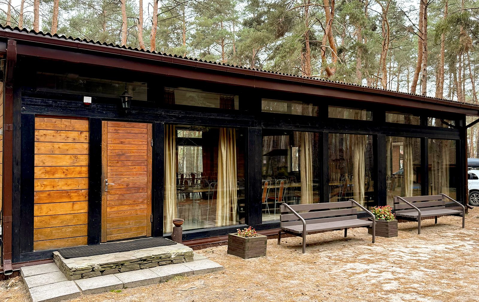 - Комфортная инфраструктура: беседки, баня, ресторан, спортивные зоны.