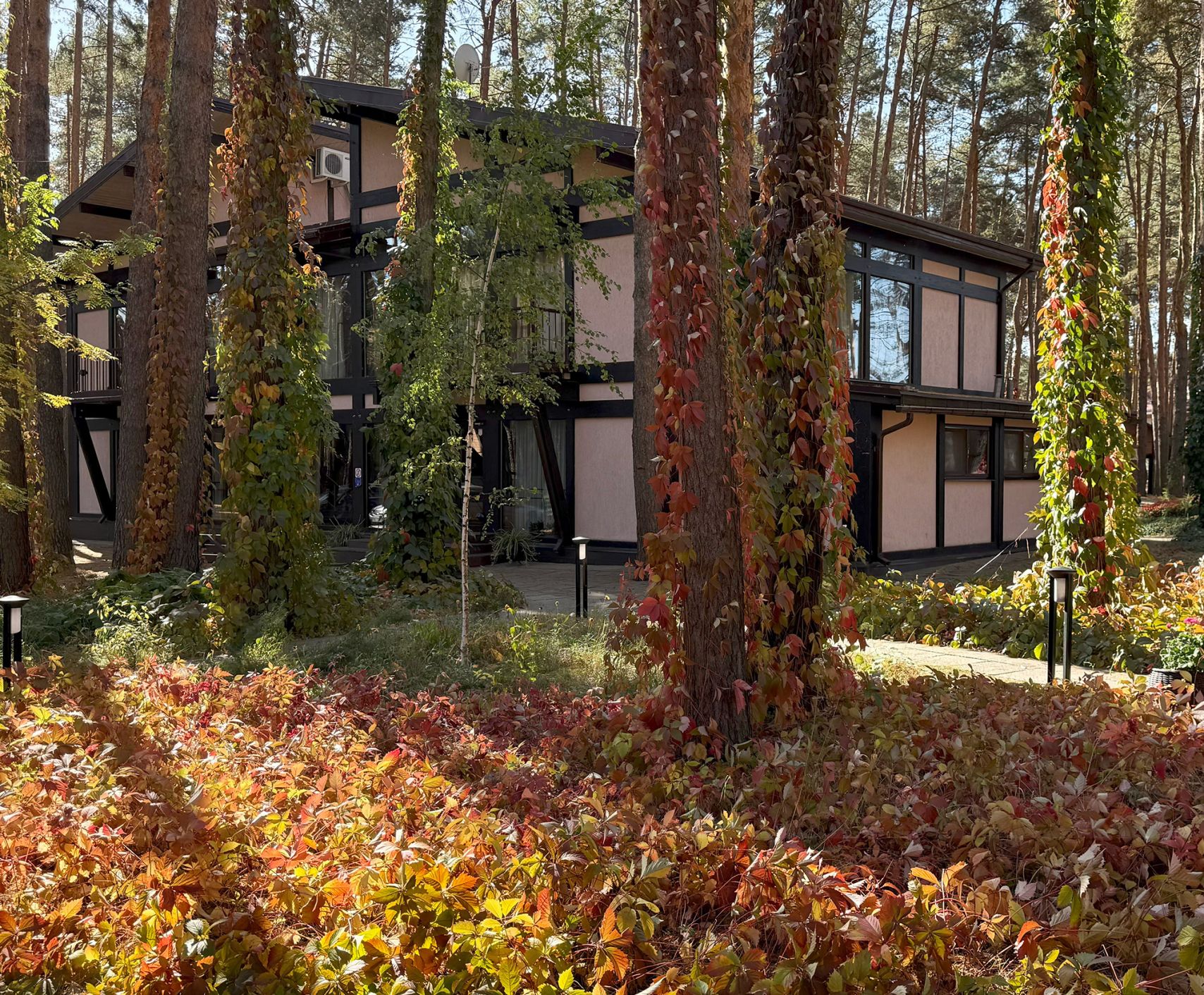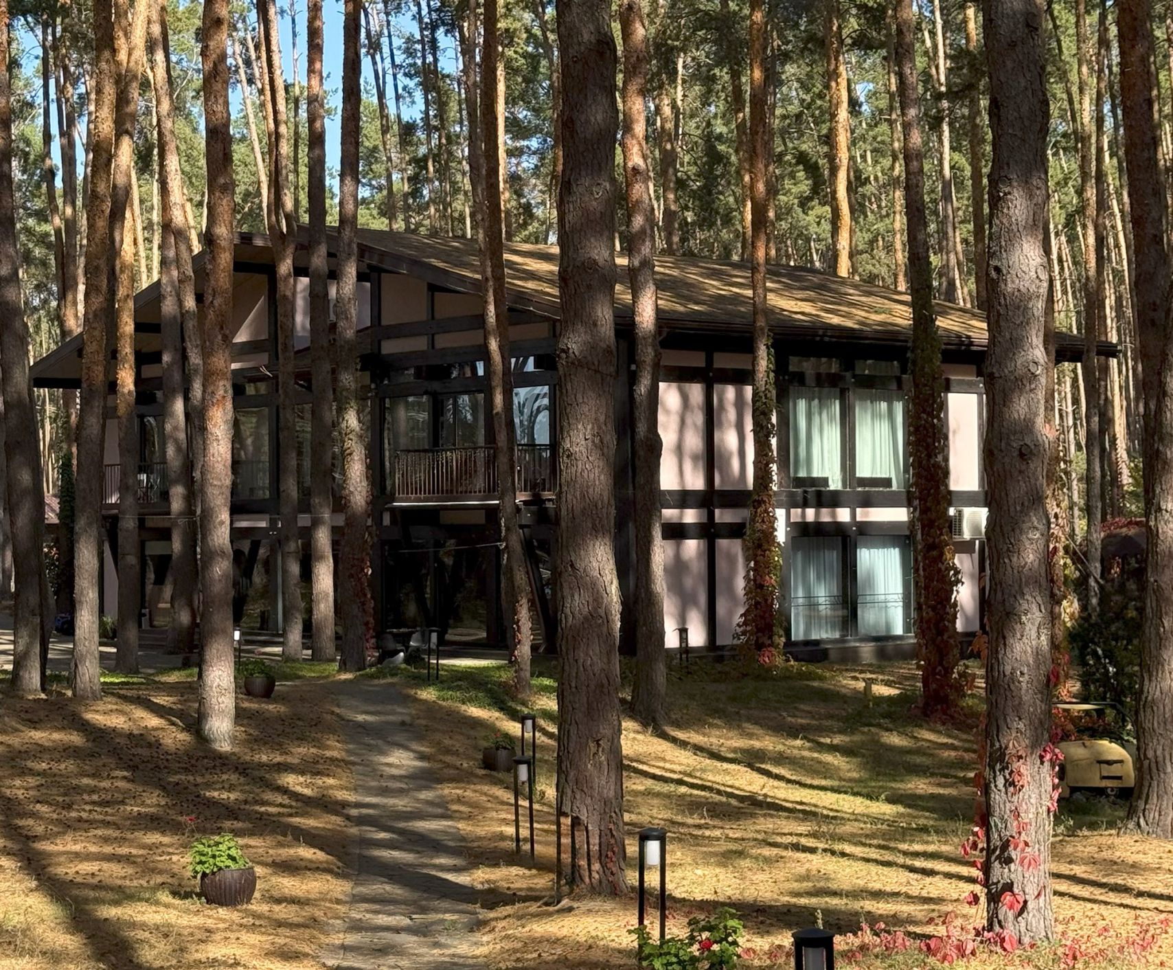 Фотографии показывают территорию базы отдыха «Аркадия» - природное окружение, сосновый бор, прогулочные зоны и атмосферу комплекса в разное время года.