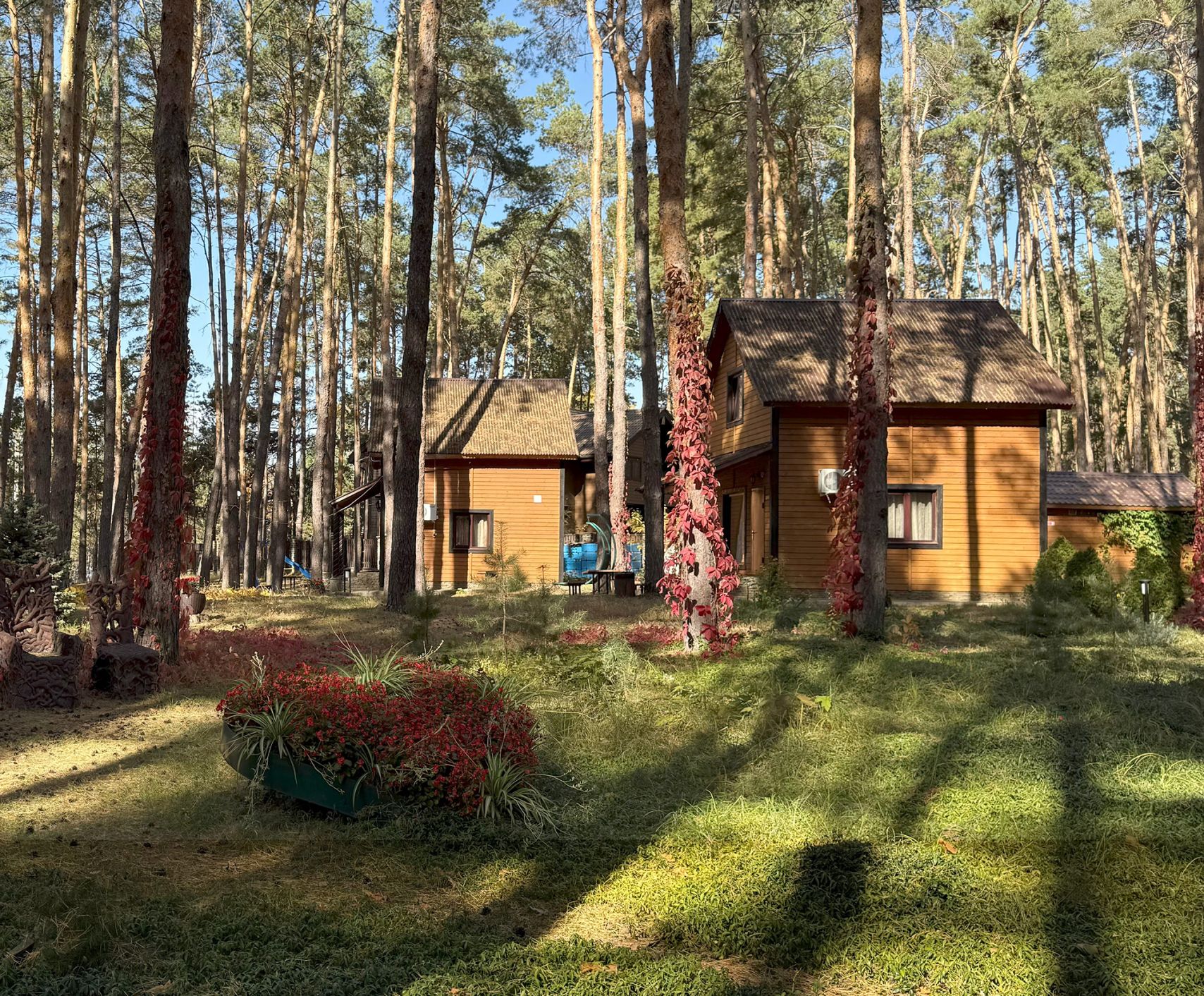 Территория базы расположена в сосновом бору на берегу водоёма, что создаёт ощущение уединения и спокойствия в любое время года. Летом гости выбирают пляжный отдых, прогулки и рыбалку, осенью наслаждаются тишиной и природными пейзажами, зимой активным отдыхом и снежными развлечениями, весной - обновлением природы и комфортным загородным отдыхом.